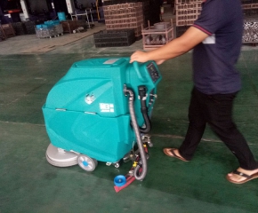 手推式洗地吸干機為電池驅動,無行走驅動電機、具備少量自走能力、擁有自動放水、自動刷洗、自動吸干功能、適合場地面積1000-5000平方米;